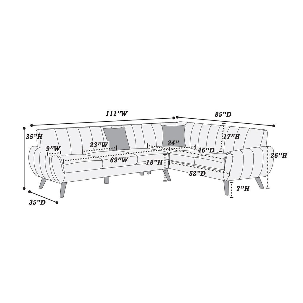 Dimensions: Overall: 111" x 85" x 33"H; Left-facing Sofa: 76" x 35" x 33"H; Right Facing Loveseat Wedge: 35" x 85" x 33"H