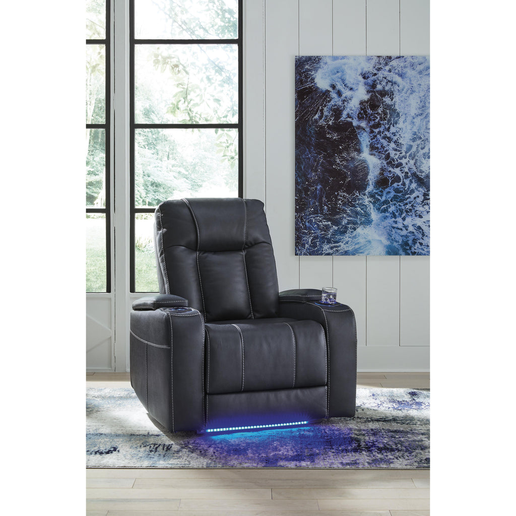 • Ambient blue LED lighting on cup holders and base for a theater-style experience