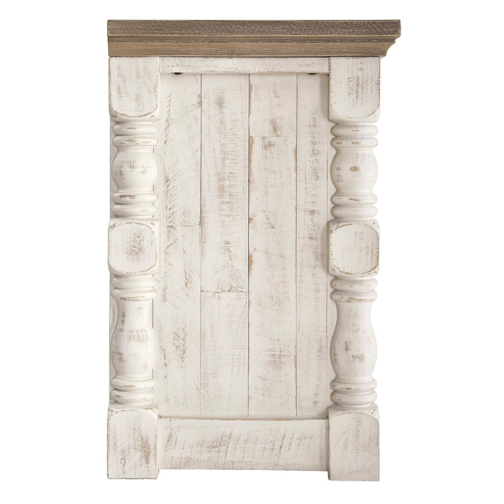 • Two-tone distressed finish: weathered gray top; vintage white base
