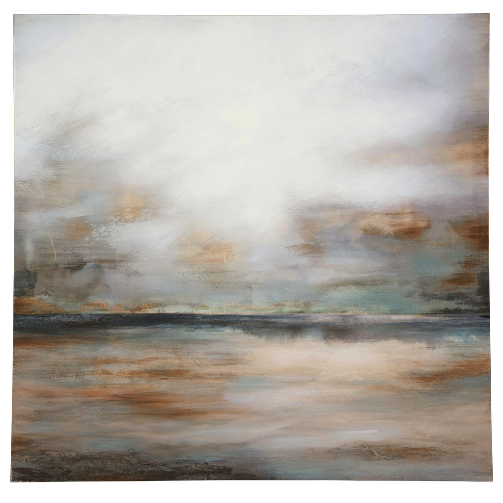 Keep your head in the clouds. This wall art is a dreamy addition to your modern decor. It’s a simply... Keep your head in the clouds. This wall art is a dreamy addition to your modern decor. It’s a simply stunning abstract take on landscape paintings, gracing your space with its bright and airy design. View more
