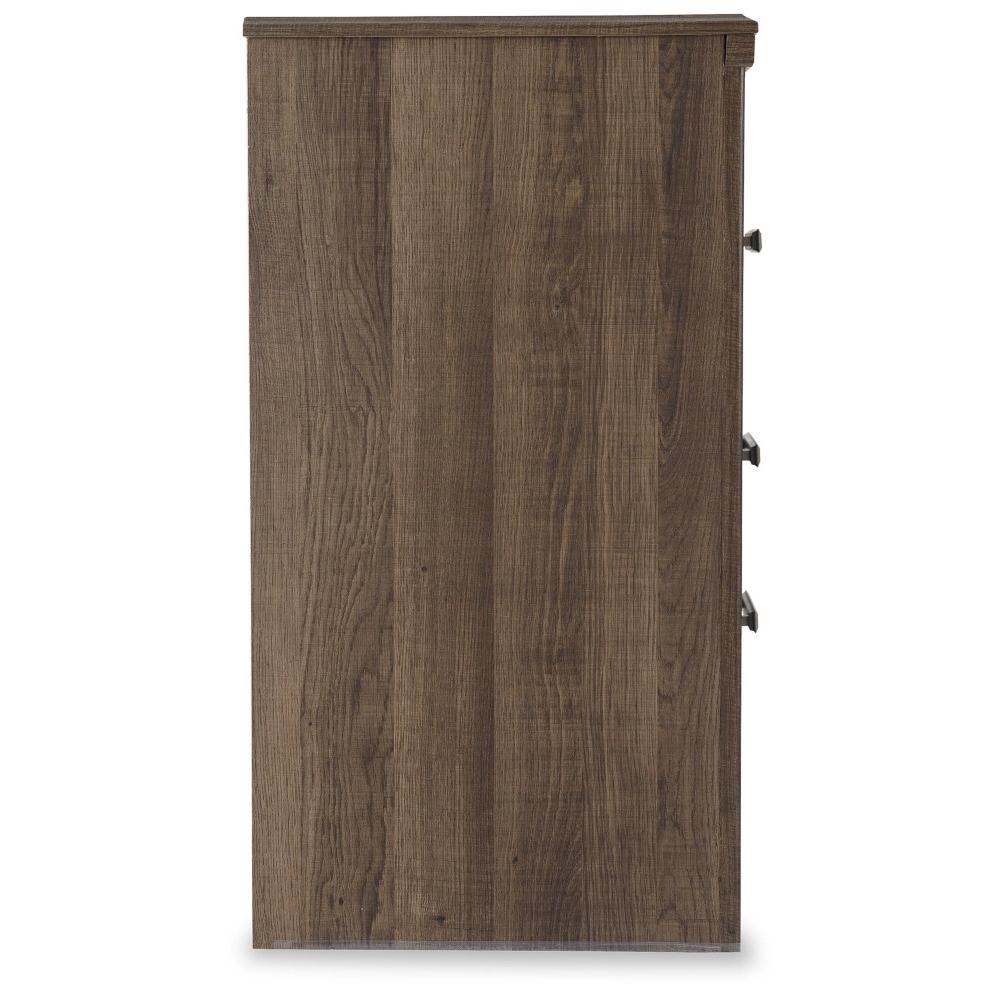 • Vintage aged brown rough sawn finish over replicated oak grain