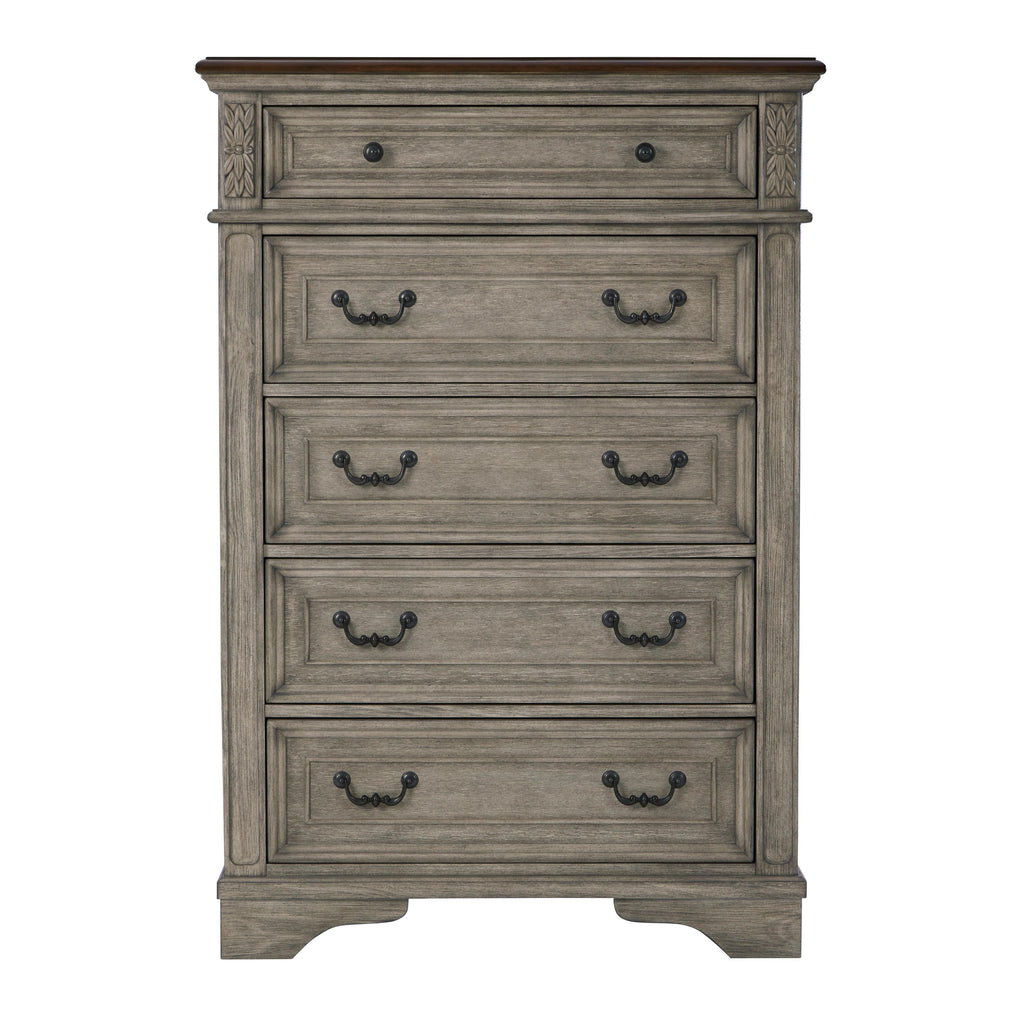 • Two-tone finish; antiqued gray body with a rich, deep walnut brown finish on top