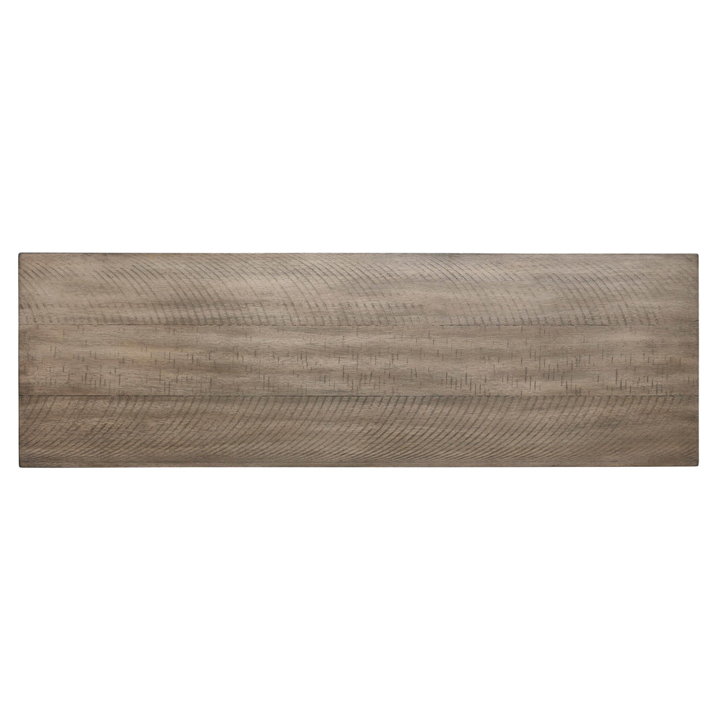 • Distressed grayish white finish