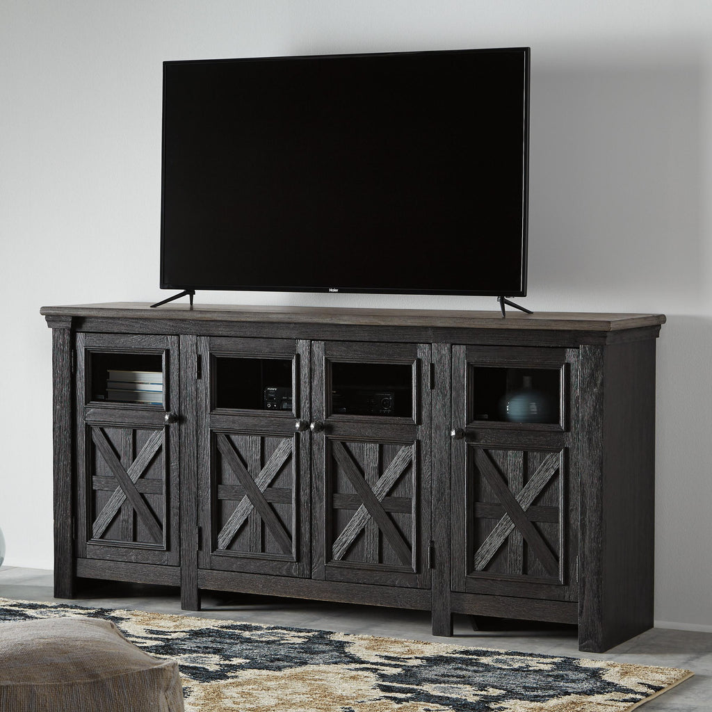 • 4 doors with clear glass insets and antiqued bronze-tone knobs